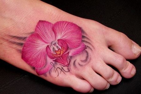 脚背彩色逼真的兰花纹身图案