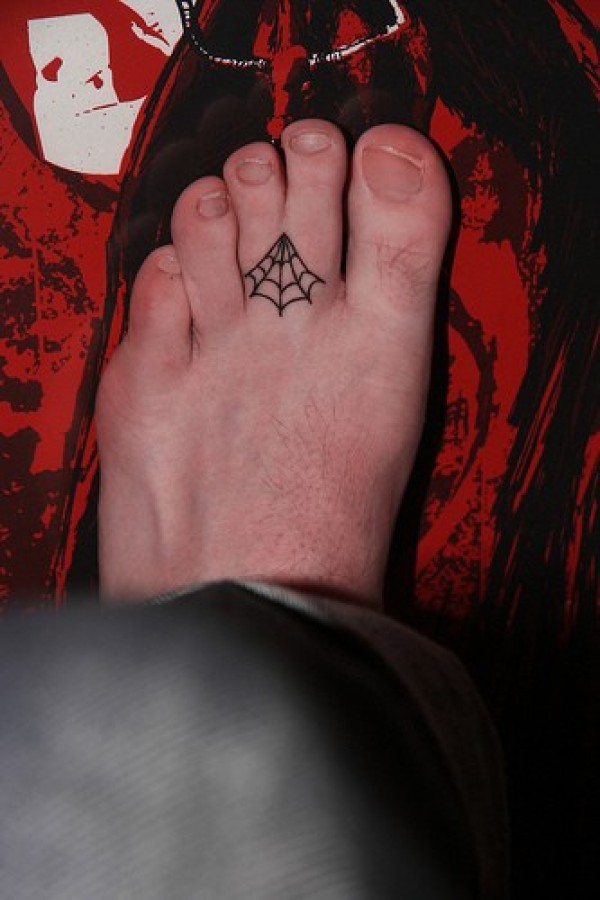 男性脚趾间的小蜘蛛纹身图案