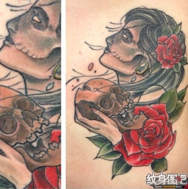 school花臂纹身--一组漂亮的school风格的花臂纹身图案作品