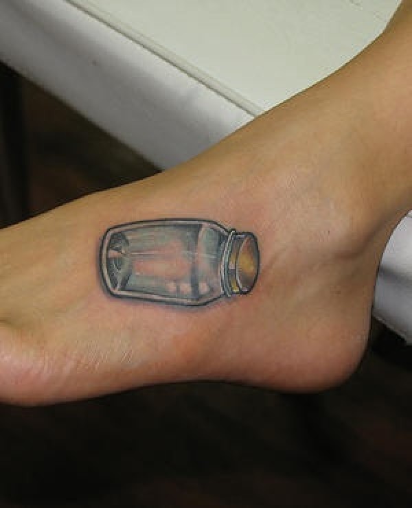 女性脚部彩色玻璃灯纹身图案