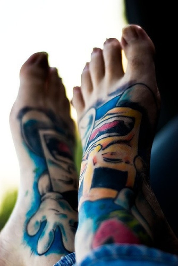 男性脚背彩色卡通纹身图案