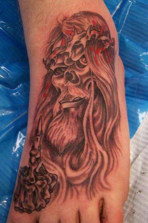 脚背上的僵尸耶稣纹身图案