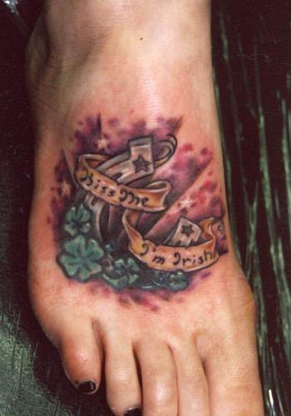 女性脚背上的幸运马蹄纹身图案