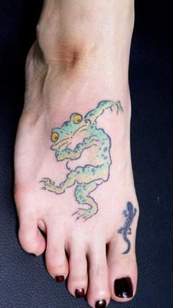 脚背上跳舞的卡通蟾蜍纹身图案