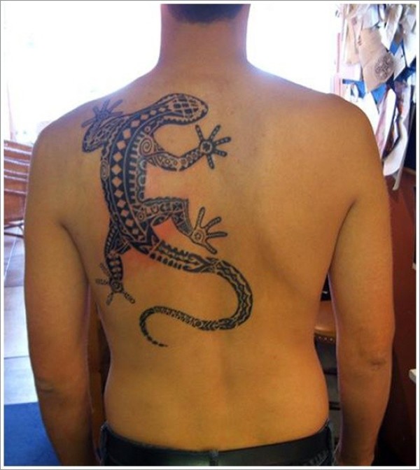 男性背部大蜥蜴图腾纹身图案
