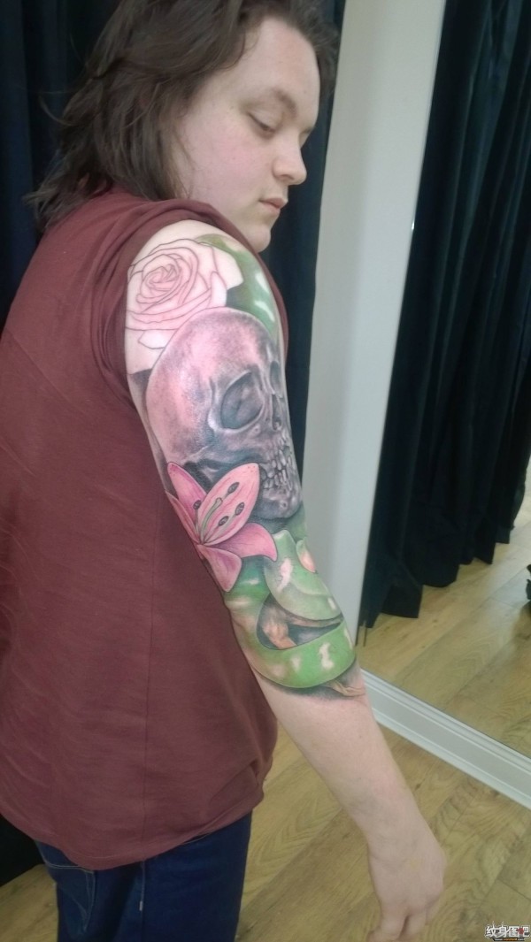 手臂莲花蛇纹身图案_臂部纹身图案大全_纹身图吧