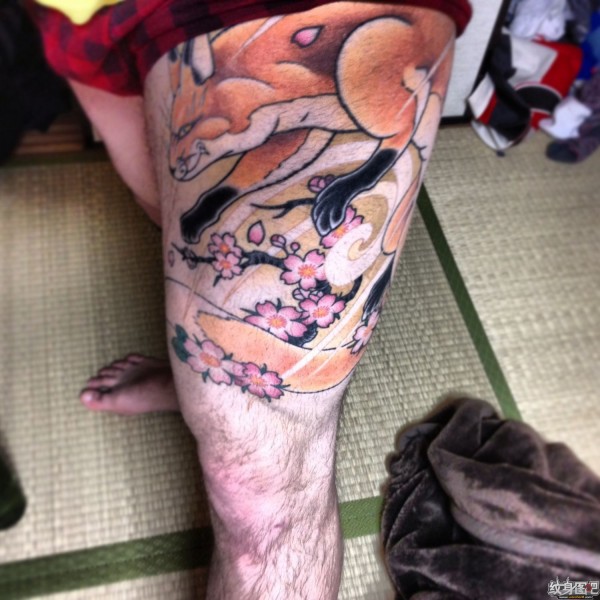 传统花腿纹身--18张传统风格的大花腿纹身图案作品