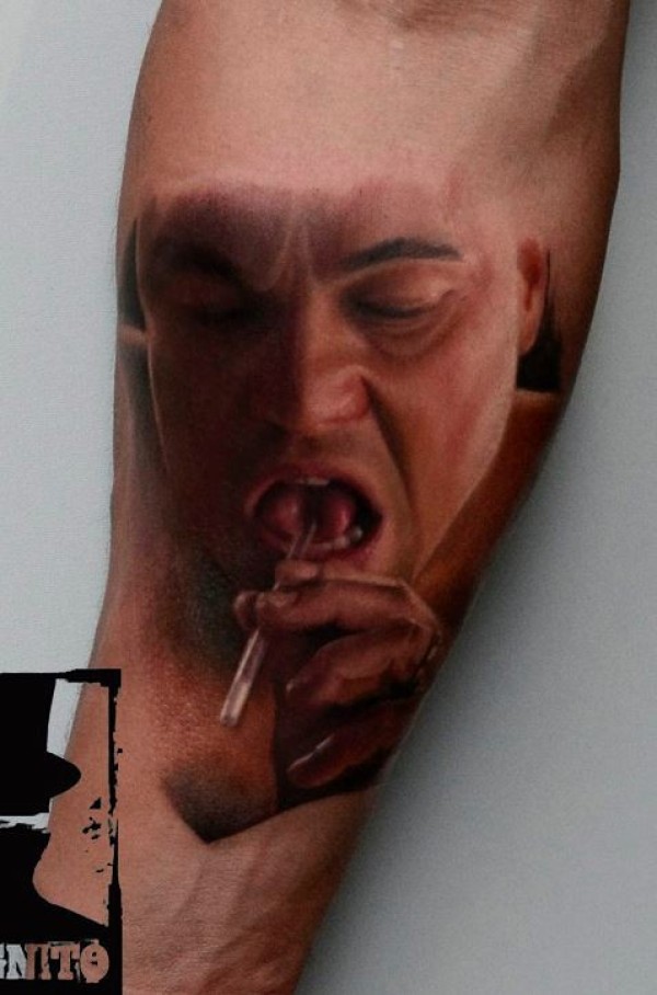 手臂逼真的莱昂纳多·迪卡普里奥肖像纹身