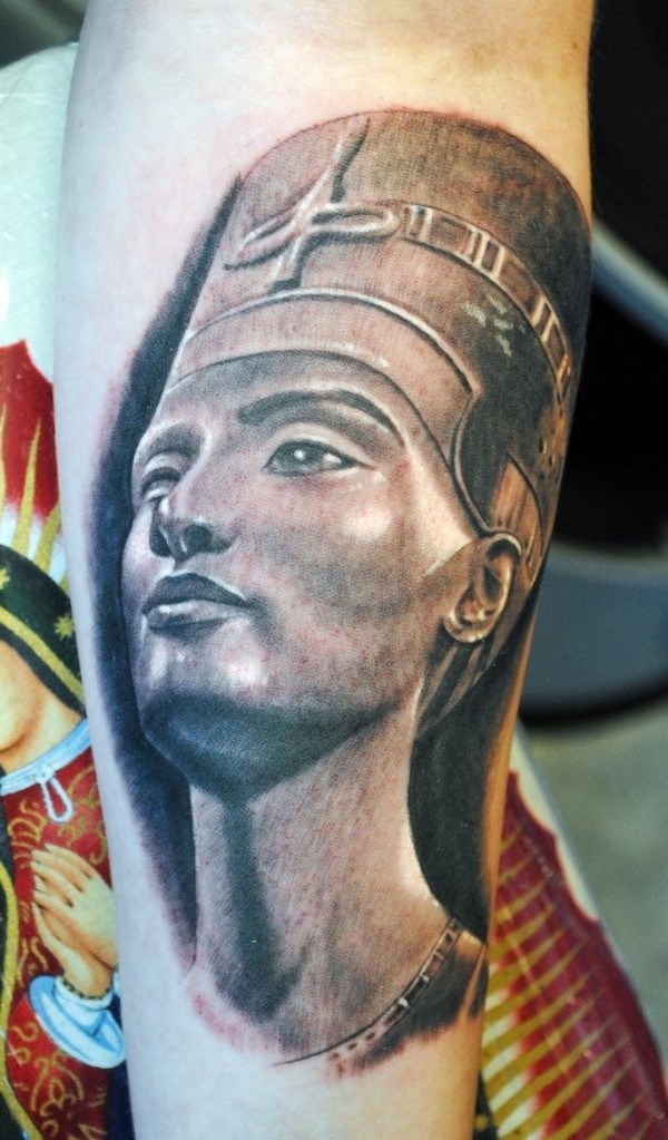 手臂黑灰埃及女王雕像纹身图案