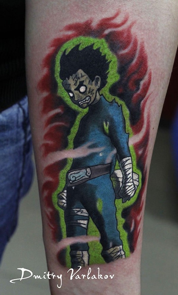 手臂彩色日本动画片风格恶魔战士男孩纹身