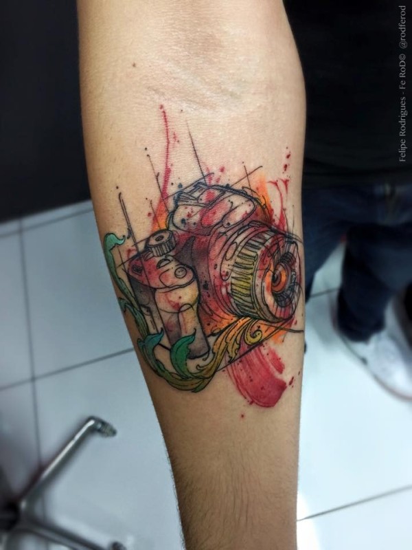 手臂素描式彩色现代相机纹身图案