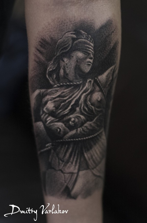 手臂棕色正义人物雕像纹身图案