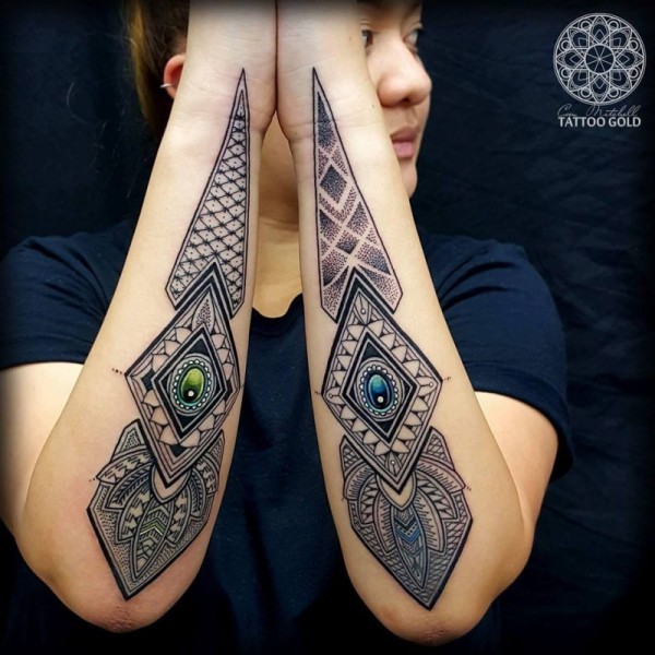 手臂点画风格彩色装饰品与钻石纹身