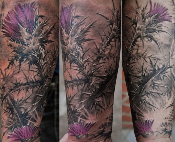 手臂彩色自然的野花纹身图案