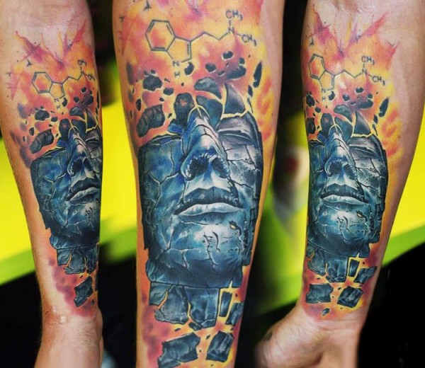 手臂插画风格的彩色神秘男子肖像纹身