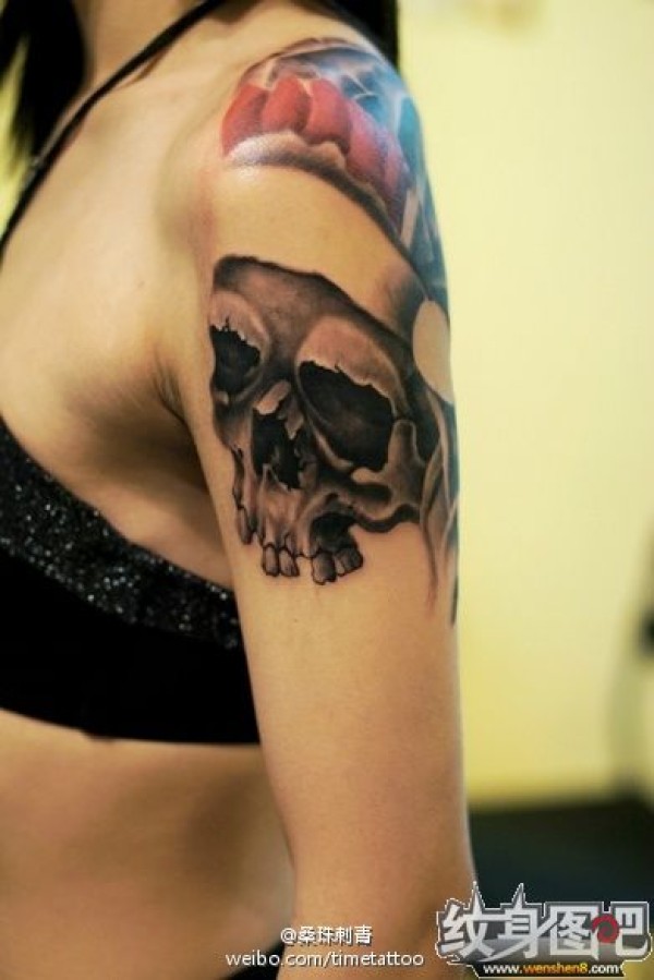 个性手臂悲伤的骷髅纹身图案图案图片_骷髅纹身图案大全_纹身图吧