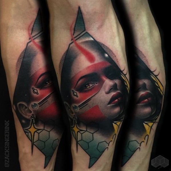 手臂新风格的彩色部落妇女肖像纹身