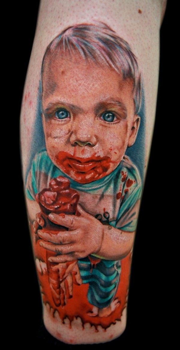 手臂彩色恐怖风格血淋淋小男孩纹身