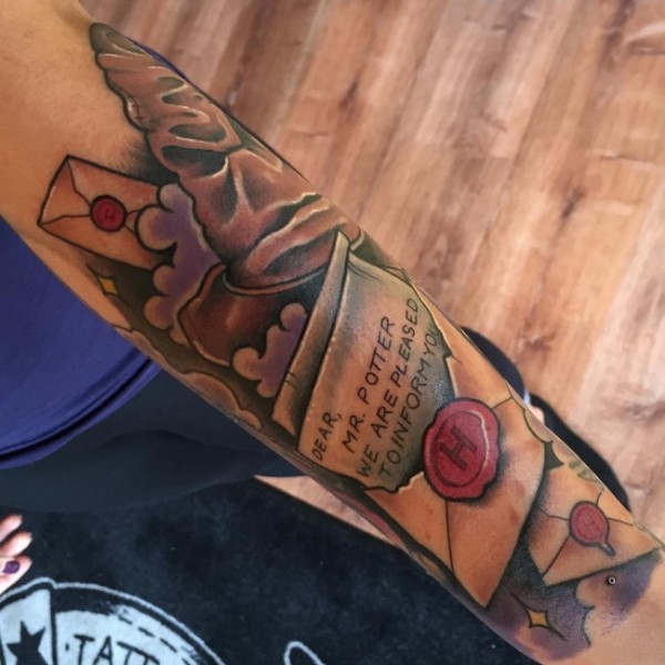 手臂新风格彩哈利·波特电影信纹身图案