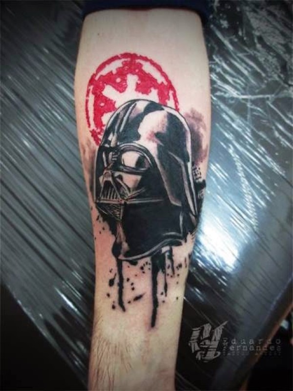 手臂插画风格彩色达斯·维德和帝国象征符号纹身