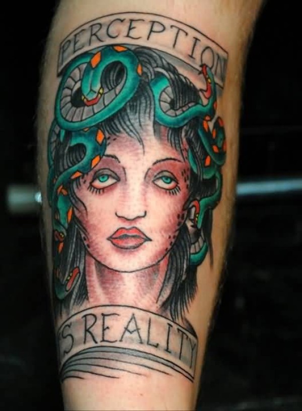 手臂老派风格的彩色神秘生物纹身图案