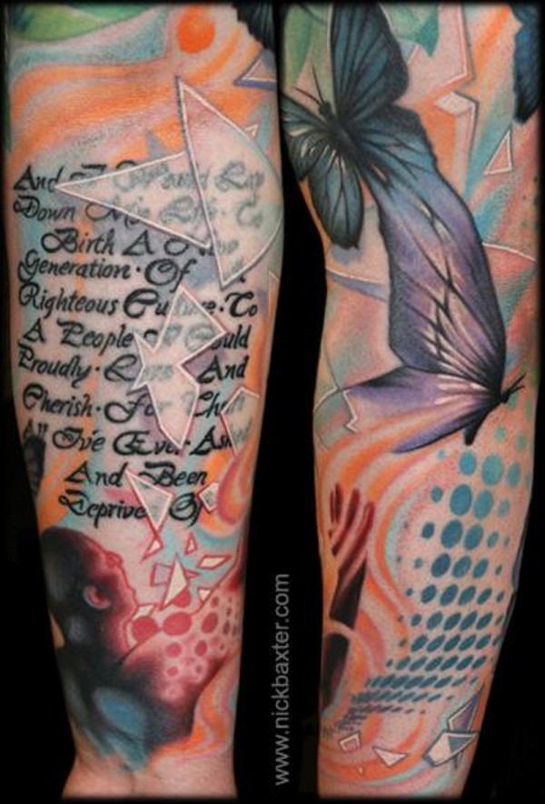 手臂彩色神秘人的现代风格纹身图案
