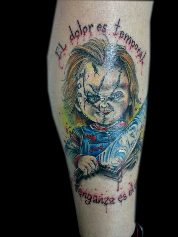 手臂彩色恐怖电影色狂玩偶纹身图案