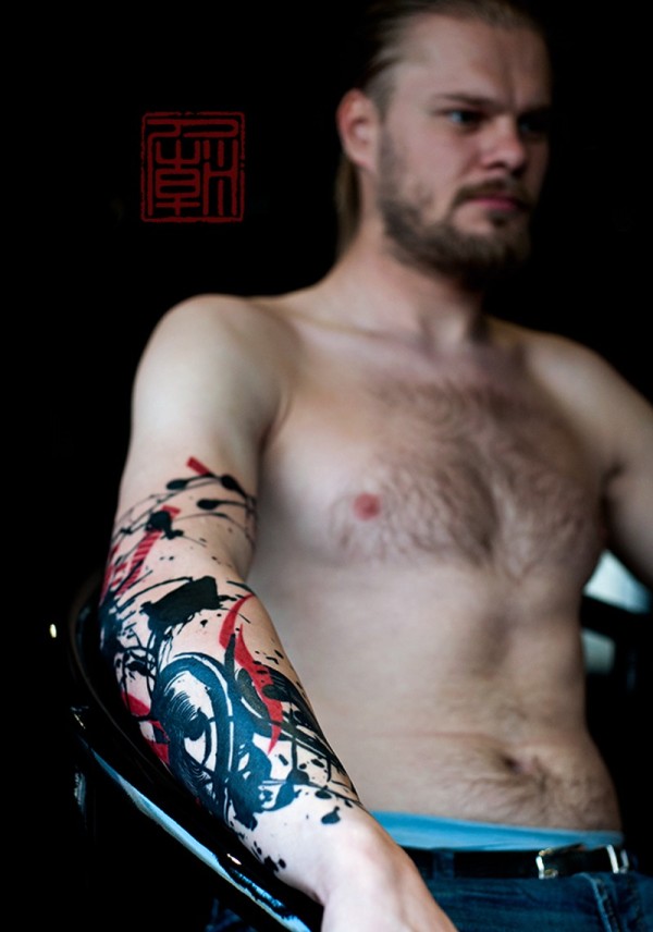 手臂大现代风格的彩色纹身图案