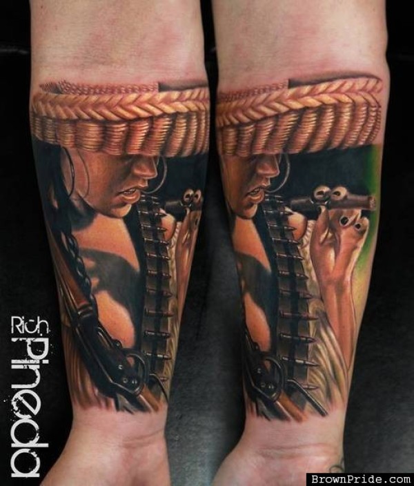 手臂逼真的彩色吸烟墨西哥妇女纹身