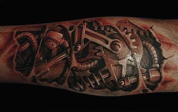 手臂3d彩色皮肤下机械纹身图案