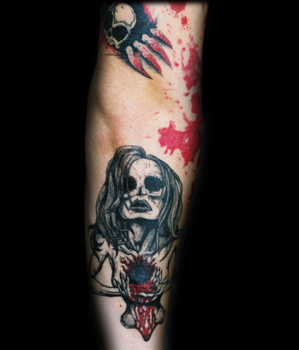 手臂恐怖电影主题彩色血腥怪物纹身图片