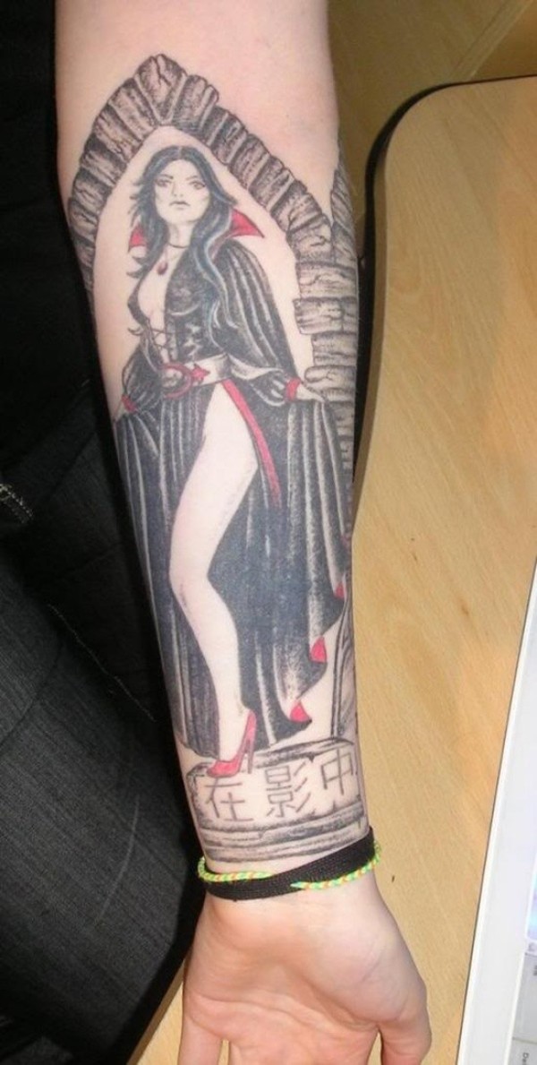 手臂老卡通色诱人的吸血鬼女人纹身图片