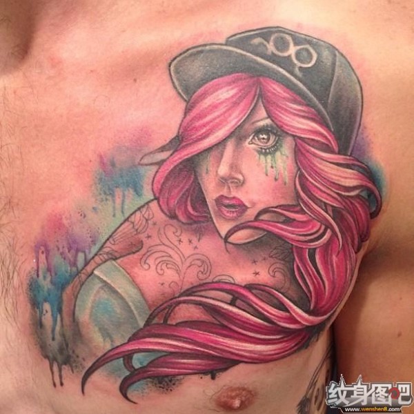 复古卡通红唇美女手臂纹身_卡通纹身图案大全_纹身图吧