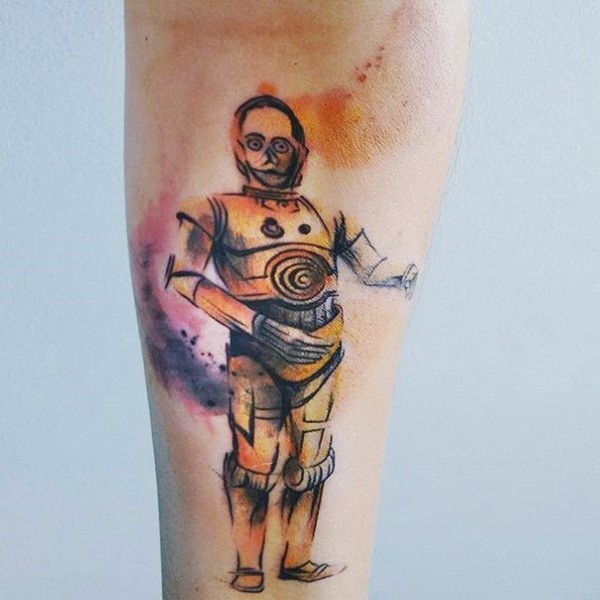 手臂自制像水彩机器人纹身图案