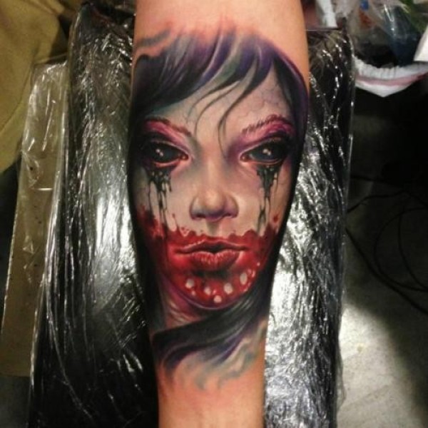 手臂彩色血腥恐怖电影恶魔女人纹身