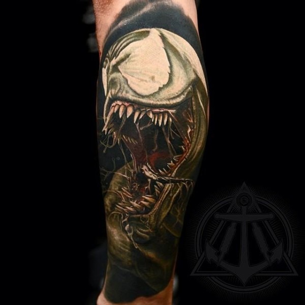 手臂彩色逼真恐怖的怪物纹身图案