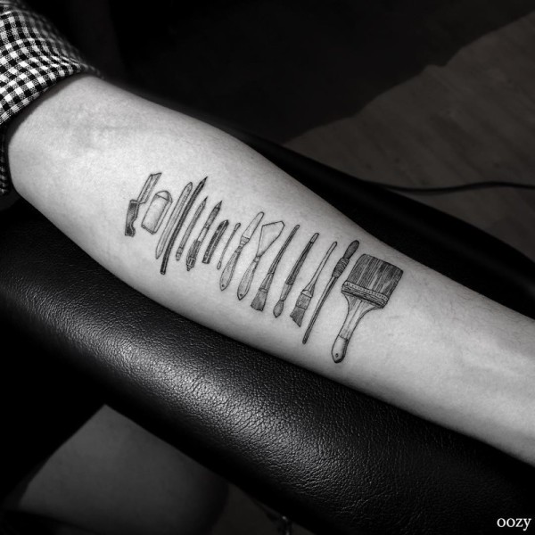 手臂黑色简约的艺术绘画工具纹身图案