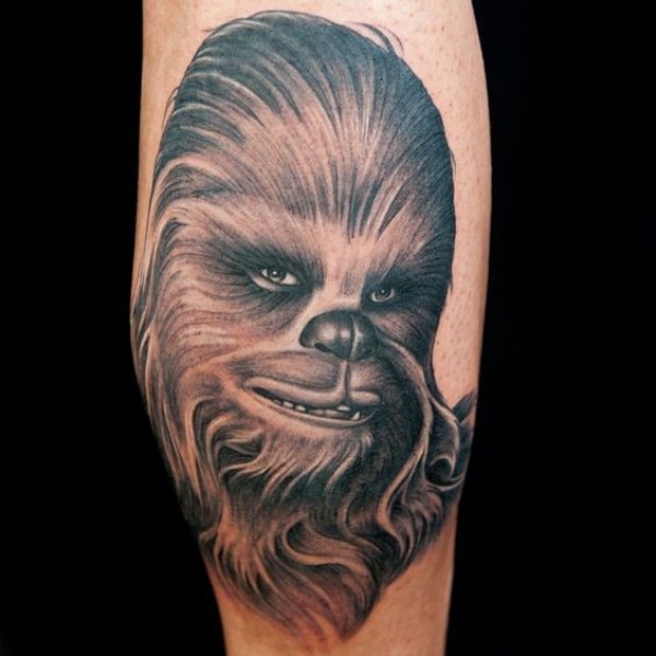 手臂逼真的彩色丘巴卡肖像纹身图案