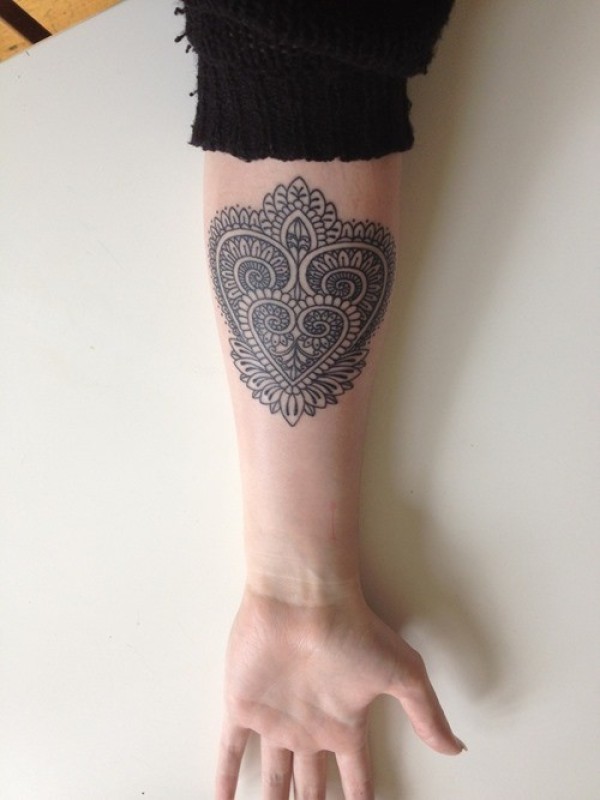 手臂漂亮的女子部落的心形纹身图案