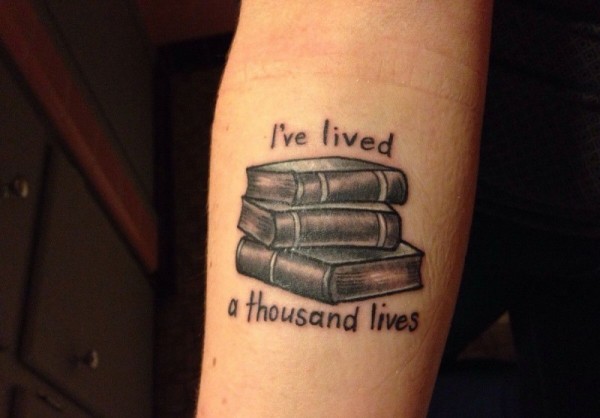 手臂灰色书籍与英文报价纹身图案