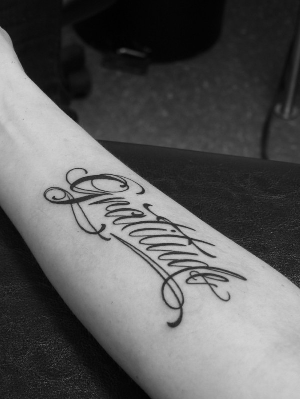 手臂弯曲的英文字母纹身图案