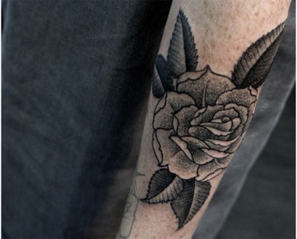 手臂好看的灰色玫瑰花纹身图案