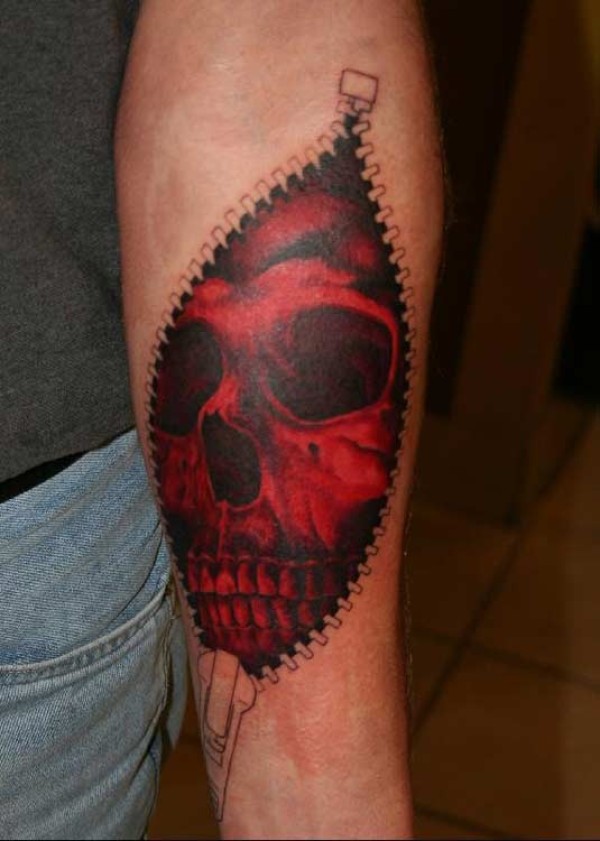 手臂逼真的皮下骷髅头纹身图案