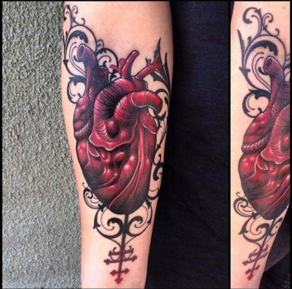 女性手臂彩色逼真的心脏纹身图片