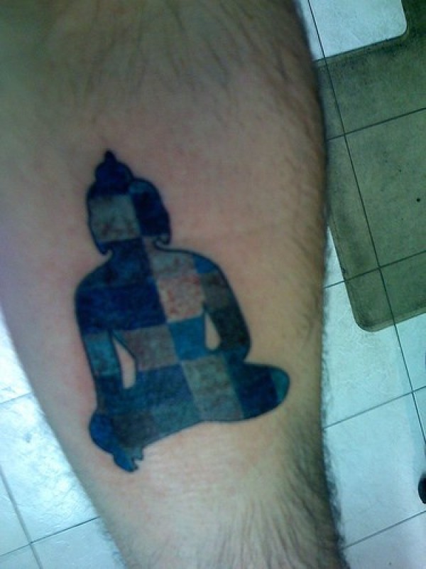 腿部佛坐莲花剪影纹身图案