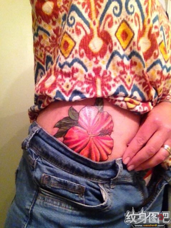 女性腰部莲花花纹刺青_腰部纹身图案大全_纹身图吧