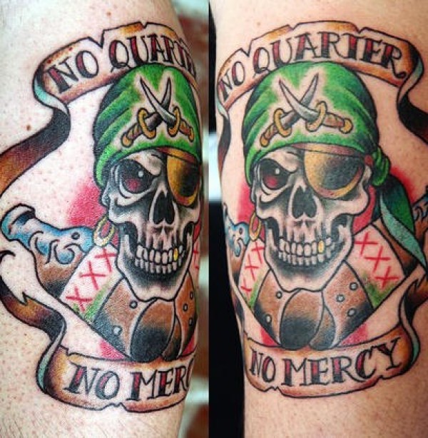 手臂彩色海盗骷髅头纹身图案