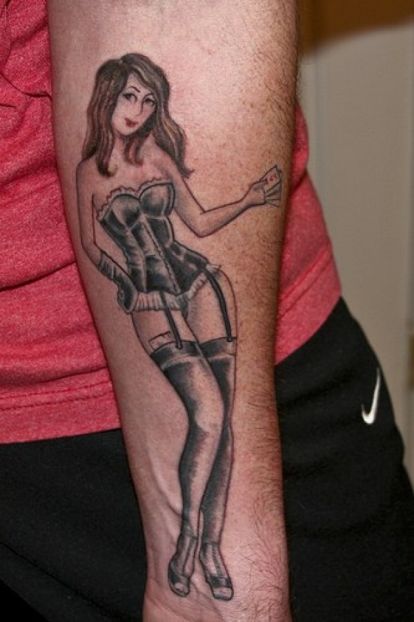 手臂棕色头发的妖妇纹身图案