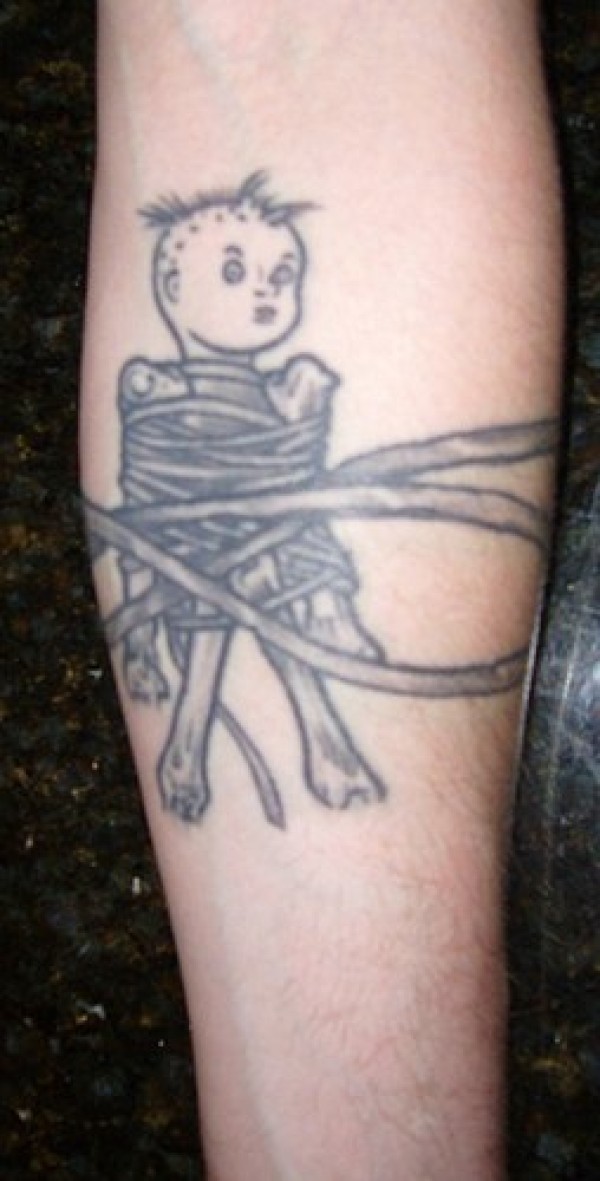手臂灰色小男孩被捆绑缠绕纹身图片