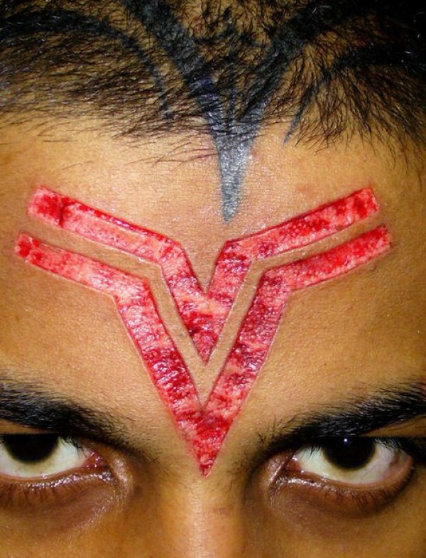 男士头部皮肤划痕符号纹身图案